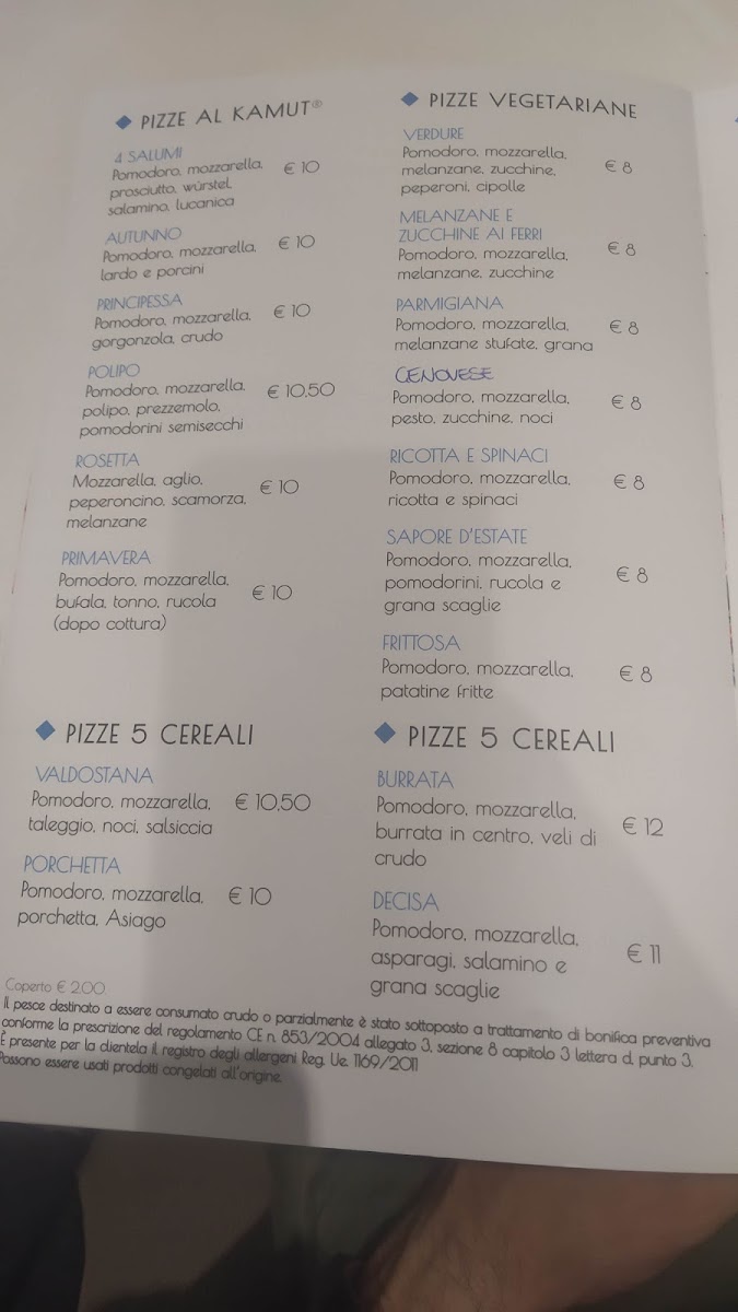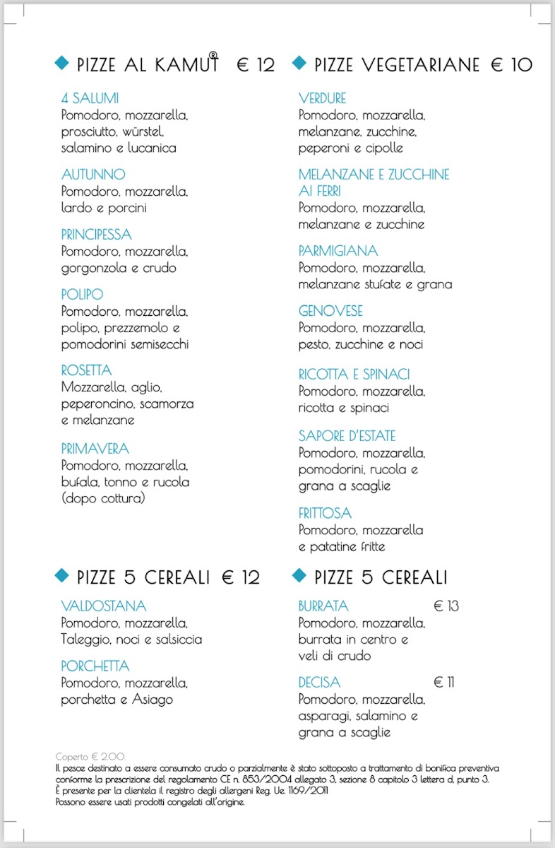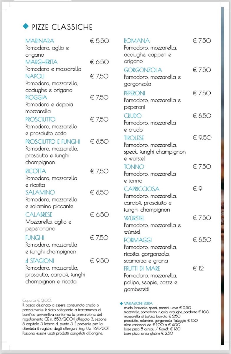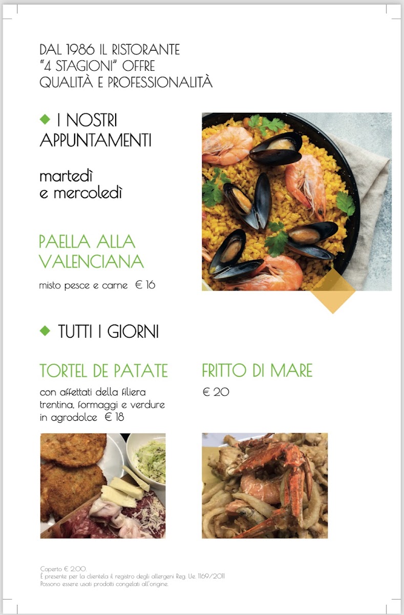 4 Stagioni Menu
